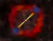 Mundell has played a leading role in the understand Gamma Ray Bursts, developing robotic telescopes that can capture the extremely fast jets.[8] In 2011 she won a Royal Society Wolfson Merit Award for her research on "Black Hole-Driven Explosions and the Dynamic Universe".[3] In 2012 whilst at Liverpool, Mundell co-designed and built RINGO2, a telescope to measure the polarisation of optical light produced after a gamma ray burst.[9] The telescope was designed to react quickly to notifications from NASA's Swift Satellite.[10] She has described the gamma-ray bursts as "the most extreme particle accelerators in the universe", which offer opportunities for testing "laws of physics".[11] In 2014, her team won a Vice Chancellor's medal for Research Scholarship.[12]