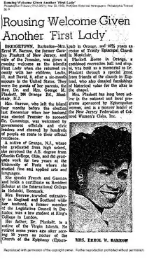 - Historical Newspapers: Philadelphia Tribunepg. 6 (March 20, 1962). "Rousing Welcome Given Another 'First Lady'Philadelphia Tribune". CC Advisor. Retrieved 2018-07-20.