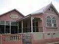Carpenter Gothic houses and small churches became common in North America in the late nineteenth century.[2] These structures adapted Gothic elements such as pointed arches, steep gables, and towers to traditional American light-frame construction. The invention of the scroll saw and mass-produced wood moldings allowed a few of these structures to mimic the florid fenestration of the High Gothic. But in most cases, Carpenter Gothic buildings were relatively unadorned, retaining only the basic elements of pointed-arch windows and steep gables. Probably the best known example of Carpenter Gothic is the house in Eldon, Iowa, that Grant Wood used for the background of his famous painting American Gothic.[3]