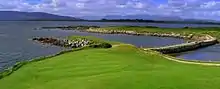 Carraroe (Irish: An Cheathrú Rua Irish pronunciation: [ənˠ ˌça(h).ɾˠuː ˈɾˠuˑə] ("The Red Quarter"),[2] its official name)[3] is a village in County Galway, Ireland, in the Irish-speaking region (Gaeltacht) of Conamara, known for its traditional fishing boats known as Galway Hookers. Its population is widely dispersed over An Cheathrú Rua peninsula between Cuan an Fhir Mhóir (Greatman's Bay) and Cuan Chasla (Casla Bay). An Cheathrú Rua has an unusual beach, Trá an Dóilín, a biogenic gravel beach made of coralline algae known as "maerl".