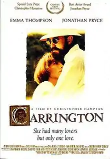 Carrington is a 1995 British biographical film written and directed by Christopher Hampton about the life of the English painter Dora Carrington (1893–1932), who was known simply as "Carrington". The screenplay is based on Lytton Strachey: A Critical Biography, the 1967-68 two-volume biography of writer and critic Lytton Strachey (1880–1932) by Michael Holroyd.
