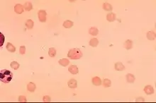 It is also called the hematic phase.[2] The most common findings are fever (usually sustained, but with temperature no greater than 102 °F (39 °C)), pale appearance, malaise, painless liver enlargement, jaundice, enlarged lymph nodes, and enlarged spleen. This phase is characterized by severe hemolytic anemia and transient immunosuppression. The case fatality ratios of untreated patients exceeded 40% but reach around 90% when opportunistic infection with Salmonella spp. occurs. In a recent study, the attack rate was 13.8% (123 cases) and the case-fatality rate was 0.7%.