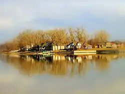 The Saratoga Bend was the impetus for the creation of the town of Saratoga, Nebraska Territory, a short mile from the river. However, the Bend was cut off from the river after a flood in 1877. A beach resort with a large boathouse and two-story pavilion, a Rod and Gun Club, and a YMCA camp had all settled on the shores of Lake Nakoma by 1906.[1]
