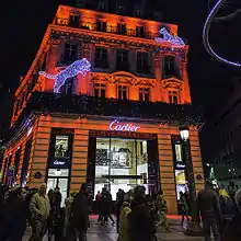 Cartier International SNC, or simply Cartier (/ˈkɑːrtieɪ/; French: [kaʁtje]), is a French luxury goods conglomerate which designs, manufactures, distributes, and sells jewellery and watches.[2][3][4] Founded by Louis-François Cartier in Paris in 1847, the company remained under family control until 1964.[4] The company maintains its headquarters in Paris, although it is a wholly owned subsidiary of the Swiss Richemont Group.[5][6] Cartier operates more than 200 stores in 125 countries, with three Temples (Historical Maison) in London, New York, and Paris.[6][7]