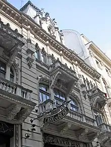 Caru' cu Bere (aka Carul cu Bere; "the beer wagon") is a bar and restaurant on Stavropoleos Street in the Lipscani district of Bucharest, Romania.[1] The business was originally opened as a brewery in 1879 by Ioan Căbăşan and his nephews, Ion, Gheorghe, and Nicolae Mircea. They were originally citizens of the Austro-Hungarian Empire and from Cața, Transylvania.[2][3] In 1889, Căbăşan assigned his lease to his eldest nephew, Ion. Ion died later that same year and was replaced in the family firm by the youngest sibling, Víctor.[2]