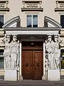 In 1905 American sculptor Augustus Saint Gaudens created a caryatid porch for the Albright-Knox Art Gallery in Buffalo, New York in which four of the eight figures (the other four figures holding only wreaths) represented a different art form, Architecture, Painting, Sculpture, and Music.[9]
