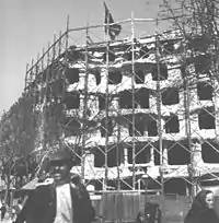 However, the Casa Milà was not built entirely to Gaudí's specifications. The local government ordered the demolition of elements that exceeded the height standard for the city, and fined the Milàs for many infractions of building codes.[15] After Semana Trágica, an outbreak of anticlericalism in the city, Milà prudently decided to forgo the religious statues.[13] Gaudí contemplated abandoning the project but a priest persuaded him to continue.[14]