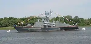 Also, the flotilla has received 3 new Buyan-class stealth type river gunboats built by the St. Petersburg Almaz shipyard.[6][7]