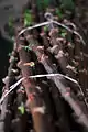 A wide range of plant parasitic nematodes have been reported associated with cassava worldwide. These include Pratylenchus brachyurus, Rotylenchulus reniformis, Helicotylenchus spp., Scutellonema spp. and Meloidogyne spp., of which Meloidogyne incognita and Meloidogyne javanica are the most widely reported and economically important.[67] Meloidogyne spp. feeding produces physically damaging galls with eggs inside them. Galls later merge as the females grow and enlarge, and they interfere with water and nutrient supply.[68] Cassava roots become tough with age and restrict the movement of the juveniles and the egg release. It is therefore possible that extensive galling can be observed even at low densities following infection.[69] Other pest and diseases can gain entry through the physical damage caused by gall formation, leading to rots. They have not been shown to cause direct damage to the enlarged storage roots, but plants can have reduced height if there was loss of enlarged root weight.[70]