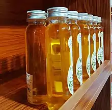 Owing to the time at which Osmanthus fragrans flowers, 'cassia' wine is the traditional choice[4][5] for the "reunion wine" drunk on the Mid-Autumn or Mooncake Festival.[6] From the homophony between 酒 and 久 (meaning "long" in the sense of time passing), cassia wine is also a traditional gift for birthdays in China.[7] It is also considered a medicinal wine in traditional Chinese medicine.[8] Li Shizhen's Compendium of Materia Medica credits sweet osmanthus with "curing the hundred diseases" and "raising the spirit".[9]