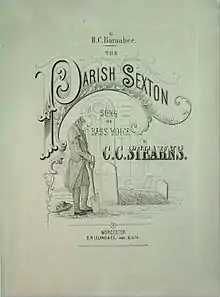 Stearns' numerous compositions included several settings of the Mass and of Vespers including the Magnificat.[20] Other compositions included a Te Deum in G[21] and settings of the Tantum Ergo, O Salutaris Hostia, Regina Coeli and Salve Regina.[22] These were warmly received when first performed,[23] including at the Mechanics Hall,[24] but were later criticized for their 'operatic' style[25] and included on the 'black list' of disapproved music issued after the Motu proprio of Pope Pius X on Sacred Music.[26] Stearns' settings have accordingly been little used since the early 20th century, but interest in them is now reviving.[27] His church anthems, sacred songs, organ voluntaries and a hymnal that he edited were published by White, Smith & Company.[28] Stearns' song The Parish Sexton was dedicated to the operatic comedian Henry Clay Barnabee, who started his career by singing in Boston churches before founding The Bostonians acting troupe.[29]