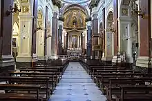 Inside the church are paintings by the studio of Giuseppe Ribera, a copy of a Caravaggio altarpiece, and paintings by Vincenzo da Forli, Giovanni Battista Spinelli, Nunzio Rossi, Giuseppe Marullo, Giuseppe Bonito, and Giacinto Diano. The church has a marble ciborium (1518), attributed to Andrea da Fiesole, and a statue of the Archangel St. Michael attributed to the studio of Francesco Laurana.[1]