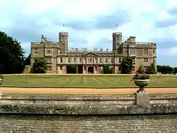 The original castle, a manor house, came about as the result of a licence obtained in 1306 by Walter Langton, Bishop of Coventry, to castellate his mansion in the village of Ashby. Sir Gerard Braybroke was at one time of Castle Ashby Manor.[1] It is a leading example of the Elizabethan prodigy house, with a Palladian section closing the front courtyard added in the 18th century.