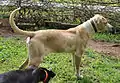 The Catahoula has a single smooth short or coarse medium coat.[12][4] The short looks almost painted.[13] The medium can have extended "feathering" on the hind legs, tail, and chest.[14]