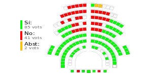 The Declaration on the Sovereignty and Right to Decide of the People of Catalonia (Catalan: Declaració de sobirania i el dret a decidir del poble de Catalunya) was issued on 23 January 2013.[1][2] The declaration asserted that Catalonia is an autonomous entity and agrees "to initiate the process to exercise the right to decide so that the citizens of Catalonia may decide their collective political future in accordance with the following principles: democratic legitimacy, transparency, dialogue, social cohesion, Europeanism, legality, role of the Catalan Parliament and participation". The declaration was passed with 85 votes in favor, 41 against and 2 abstentions[3] in the Parliament of Catalonia.