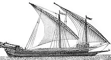Tartane in English and in most European languages (although in some it changes to tartana or tartan ) is a small Mediterranean Latin sail boat (or bow-stern rig ) used between the 16th and 19th centuries. [17] The different tartanes were used as couriers, for cabotage, as fishing boats, and as military ships . [18] [19] [20] In their more than three hundred years of history, they had different designs, different numbers of masts and even varied sailing gear.