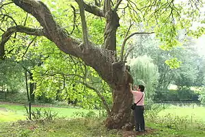 It is widely grown as an ornamental tree. The catalpa has the distinction of bearing some of the showiest flowers of all the American native trees. Its value in this respect has long been recognized and it holds an assured place in the parks and gardens of all temperate countries.[4] It has gained the Royal Horticultural Society's Award of Garden Merit,[3] as has the gold-leafed variety C. bignonioides 'Aurea'.[6] The purple-leaved hybrid Catalpa × erubescens 'Purpurea' syn. C. bignonioides 'Purpurea', has also achieved the award[7] (confirmed 2017).[8]