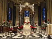 Architect Henry D. Dagit renovated the cathedral interior, 1914–15, adding the apse behind the High Altar. D'Ascenzo Studios executed the apse's stained glass windows and mosaic murals.