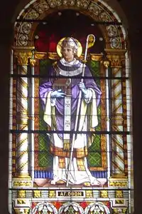 The four windows of the right aisle of the church adorn respectively stained glass of Saint Amalia, Pope Sixtus II, Pope Telesphorus, Saint Athanasius of Alexandria, and the stained glass windows of the left aisle depicting the Saint Otto, the Pope Anterus, Pope Anacletus and the Saint John Chrysostom, the Patriarch of Constantinople.