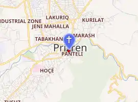 Cathedral of Saint George in Prizren (Serbian: Саборни храм Светог Ђорђа у Призрену) is the Cathedral church of the Serbian Orthodox Eparchy of Raška and Prizren, located in the town of Prizren, Kosovo[a]. It was built from 1856 to 1887, near the Old Church of Saint George, previous cathedral church of the same eparchy.[2] The cathedral was burned and severely damaged by Albanian mobs during the 2004 unrest, but was later renovated.