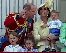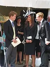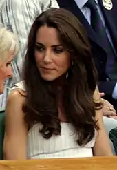She grew up in the village of Chapel Row, part of Bucklebury near Newbury in the English county of Berkshire.[2] She studied art history at the University of St Andrews in Scotland, where she met William in 2001. Their engagement was announced in November 2010. They married on 29 April 2011 at Westminster Abbey. The couple's children—Prince George, Princess Charlotte, and Prince Louis of Cambridge—are third, fourth, and fifth in the line of succession to the British throne, respectively.[3][4][5][6][7]