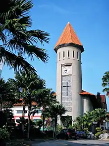 Catholic High School was founded in 1935 as Sino-English Catholic School (英华公教中学) by the Reverend Father Edward Becheras, a French missionary.[1] Although it was a Catholic school, it accepted both Catholic and non-Catholic students, and was run along the lines of a Sino-English school.[1] The school first started as an extension of the Church of St. Peter and Paul.[2] Fr Becheras envisaged the school as a bilingual institution from the start, emphasising instruction in both English and Chinese, a policy that continues today.[3] In addition, Fr Becheras emphasised the teaching of science, uncommon at that time.[4]