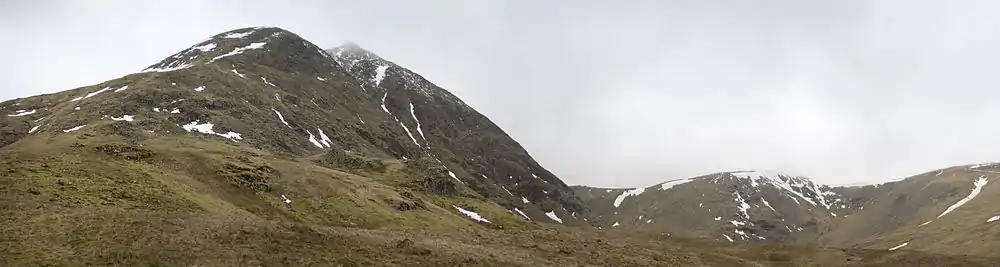 Taking on the classic mountain shape of a pyramid, Catstye Cam draws the eye in any view where the overtopping bulk of Helvellyn is hidden behind. As Wainwright said "If Catstycam stood alone, remote from its fellows, it would be one of the finest peaks in Lakeland. It has nearly, but not quite, the perfect mountain form with true simplicity in its soaring lines, and a small pointed top, a real summit that falls away on all sides".[3] Even with the connection to Helvellyn, Catstye Cam still has a prominence of over 200 ft due to the pronounced bow of Swirral Edge. High Spying How on Striding Edge, by comparison, is nothing but a rock turret, an independent peak in almost no-one's estimation.