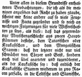 ... the five human races identified by Johann Friedrich Blumenbach – Negroes, American Indians, Malaysians, Mongolians, and Caucasians. He chose to rely on Blumenbach, leader of the Göttingen school of comparative anatomy