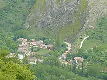 Village at the beginning of the road to Valporquero and to Valporquero cave.