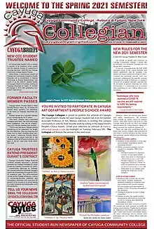 The Cayuga Collegian is the official newspaper of Cayuga County Community College in Auburn, New York. The publication is operated by Cayuga Community College students serving as the editors, photographers and reporters. Mary Gelling Merritt, a media professional and professor, has served as the faculty advisor since 2000.