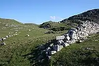 Amongst the ruins of Ceannabeinne there are the remains of what is thought to be a Monastic settlement, possibly dating from early medieval times.[2] Also charcoal remains have been dated to 370-100 BC by Radiocarbon dating, which suggest an Iron Age fort.[2]
