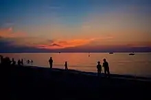 Cedar Beach West is located at the peninsula's western end, overlooking the Mount Misery Point section of Port Jefferson. This sections contains a popular fishing pier. Nearer to Cedar Beach's western end is a boat launch ramp and marina, with the Mount Sinai Yacht Club located on the peninsula.
