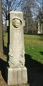 Statue atop John B. Windsor monument, sculpted by Carl Conrads (circa 1887-1905)