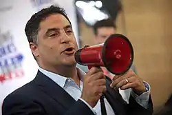 Uygur is critical of establishment politics.[57] He has called for the Democratic Party to undergo a revitalization process.[7] On January 23, 2017, three days after the inauguration of President Donald Trump, Uygur co-founded the Justice Democrats.[58][59][60] The group seeks to steer the Democratic Party in the strongly progressive, social democratic or democratic socialist[60] direction espoused by U.S. Senator Bernie Sanders. They do this by running progressive candidates in primaries against those whom they consider moderate and conservative Democrats[61][60] such as Joe Manchin,[62] Joe Crowley,[63] and Dianne Feinstein.[64]