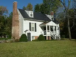 The central-passage house was built much like the earlier hall and parlor house, except that its hall and parlor were divided by a central passageway. In fact, in many of the earliest examples a hall-parlor arrangement had a second partition added inside the existing structure or an additional room was added to one side to form a central-passage house.[2][3] In form it was one-and-a-half storied, on a raised foundation, and had gable-end chimneys. Earlier examples were always one room deep (single-pile) and had a steeply pitched roof.