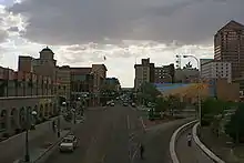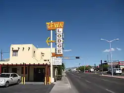 Central Avenue is a major east-west street in Albuquerque, New Mexico, which historically served as the city's main thoroughfare and principal axis of development.[2] It runs through many of Albuquerque's oldest neighborhoods, including Downtown, Old Town, Nob Hill, and the University of New Mexico area. Central Avenue was part of U.S. Route 66 from 1937 until the highway's decommissioning in 1985 and also forms one axis of Albuquerque's house numbering system. It was also signed as Business Loop 40 until the early 1990s when ownership of Central Avenue was transferred from the New Mexico State Highway Department to the City of Albuquerque.