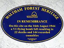 Plaque marking the V1 attack in 1944.