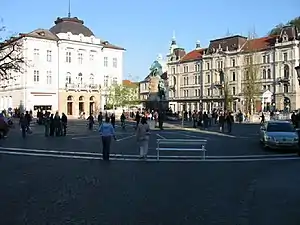 The Ljubljana Central Pharmacy (Centralna lekarna Ljubljana), or shortly the Central Pharmacy (Centralna lekarna), is one of the most prominent buildings at Prešeren Square (Prešernov trg), the central square of the Slovenian capital of Ljubljana.[1] It is also known as Mayer Palace (Slovene: Mayerjeva palača)[1] or Prešeren Square 5 Palace (Palača Prešernov trg 5).[2] It houses the city's central pharmacy.