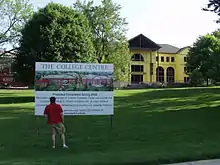 Over 200 Centre College students took part in a protest and sit-in at the campus administration building, Old Centre, on May 2, 2018. The students were protesting racial discrimination on campus. A group of black students drafted and presented a statement of intent and list of demands to the campus and school administration, demanding changes concerning the school's Department of Public Safety, Title IX office, and the creation of a Diversity and Inclusion office, among other things. Over 400 students signed a petition supporting the movement. The protesters were present all day and night in Old Centre from May 2 to 4 while student leaders negotiated with President John Roush, sleeping in the building and in tents outside; they said they refused to leave until their demands were met.[27] The sit-in ended on May 4, with school administration agreeing to many of the student demands.[28]