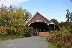 The Centre Covered Bridge, also known as the Sanborn Covered Bridge, is a historic covered bridge, spanning the Passumpsic River next to U.S. Route 5 (US 5) north of the center of Lyndon, Vermont. Built in 1872, it was moved to its present location and taken out of service in 1960. It is one of three surviving Paddleford truss bridges in Vermont. It was listed on the National Register of Historic Places in 1974.[1]
