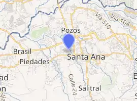 Centro de Conservación de Santa Ana (Santa Ana Conservation Center, CCSA) is a wilderness area of approximately 52 hectares (140 acres), located in the Uruca district, in the canton of Santa Ana, Costa Rica. It has an average altitude of 900 meters and is bounded to the east by the bed of the river Uruca. The site includes patches of one of the last remnants of dry tropical forest in the Central Valley, trails, Agricultural Historical Museum, soccer field, picnic area, a species of wild and domestic animals and a nursery of forest species.