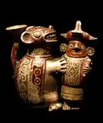 Native American pottery is an art form with at least a 7500-year history in the Americas.[1] Pottery is fired ceramics with clay as a component. Ceramics are used for utilitarian cooking vessels, serving and storage vessels, pipes, funerary urns, censers, musical instruments, ceremonial items, masks, toys, sculptures, and a myriad of other art forms.