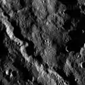 The rotation period of Ceres (the Cererian day) is 9 hours and 4 minutes. It has an axial tilt of 4°.[9] This is small enough for Ceres's polar regions to contain permanently shadowed craters that are expected to act as cold traps and accumulate water ice over time, similar to the situation on the Moon and Mercury. About 0.14% of water molecules released from the surface are expected to end up in the traps, hopping an average of 3 times before escaping or being trapped.[9]
