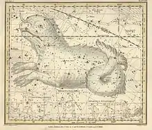 Cetus has been depicted in many ways throughout its history. In the 17th century, Cetus was depicted as a "dragon fish" by Johann Bayer. Both Willem Blaeu and Andreas Cellarius depicted Cetus as a whale-like creature in the same century. However, Cetus has also been variously depicted with animal heads attached to a piscine body.[7]