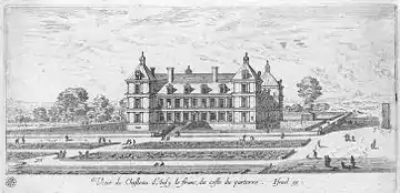 ![]() Perspective view of the north pavilion of the Château d'Ancy-le-Franc with the entrance facade to the left | |