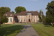 The house was built as a summer residence by Jean de Dietrich in the German Baroque and Classical French style.[2] Noteworthy features of the château include the façade, the roof, the terraces and the fences, and inside the building, the five panelled rooms on the ground floor and the main staircase. The outbuildings are 18th century, and their roofs and façades are of note. The château has substantial gardens.[1]