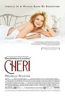 Chéri is a 2009 romantic comedy-drama film directed by Stephen Frears from a screenplay by Christopher Hampton, based on the 1920 novel of the same name by French author Colette. It stars Michelle Pfeiffer and Rupert Friend. The film premiered at the 2009 Berlin International Film Festival.[2]