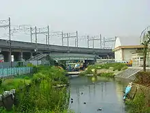Chūō-ku is located to the west of the center of Saitama City, the capital of Saitama Prefecture. Chūō-ku is wedge-shaped with a southern tip. Measuring approximately 5.5 km in the north–south direction and approximately 3.5 km in the east–west direction, it has an area of 8.39 km2.[1] Located on the Kantō Plain, Chūō-ku has a low elevation. Its lowest point, located at Ōto-nichōme, has an elevation of 4.7 m above sea level and its highest point, located at Suzuya-yonchōme, has an elevation of 16.6 m above sea level.[2] The majority of rivers run north–south down the ward, consequently travelling east–west across the ward requires travelling across alternating regions of plateaus and depressions. The easternmost of these plateaus is the Ōmiya-daichi, to the west of which lies the Kōnuma River which is at the centre of a 500-meter long depression. The Ōmiya-daichi continues to the west of this depression until it meets another depression due to the Arakawa River at the westernmost point of the ward.[3]
