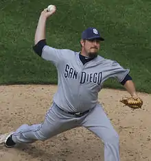 Qualls signed with the Padres for the 2011 season and a $6 million team option for 2012.[11] He finished the 2011 season with a 6–8 record and 3.51 ERA in a team-high 77 appearances.[12]