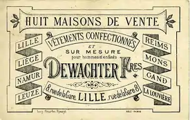 - France, Maison Dewachter, Bordeaux (August 2, 2018). "English: This is the letterhead for the Bordeaux location of Maison Dewachter, a chain of men's and boys' clothing stores in Belgium and France". Archived from the original on May 3, 2018. Retrieved August 2, 2018 – via Wikimedia Commons.